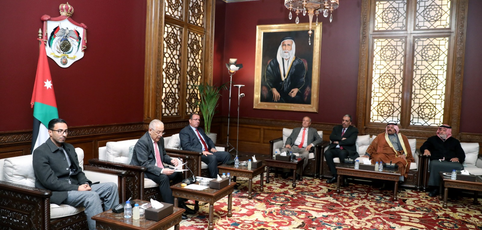 *عمان – 21 كانون الثاني 2026*- التقى رئيس الديوان الملكي الهاشمي، يوسف حسن العيسوي، اليوم الأربعاء، وفدين من أبناء قضاء الضليل ومنطقة أبو نصير، في لقاءين منفصلين في الديوان الملكي الهاشمي، أكد خلالهما متانة النموذج الأردني المستند إلى القيادة الهاشمية الحكيمة، والوعي الشعبي العميق، والثبات على المبادئ الوطنية والقومية.